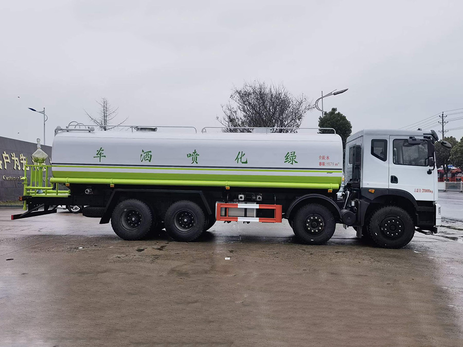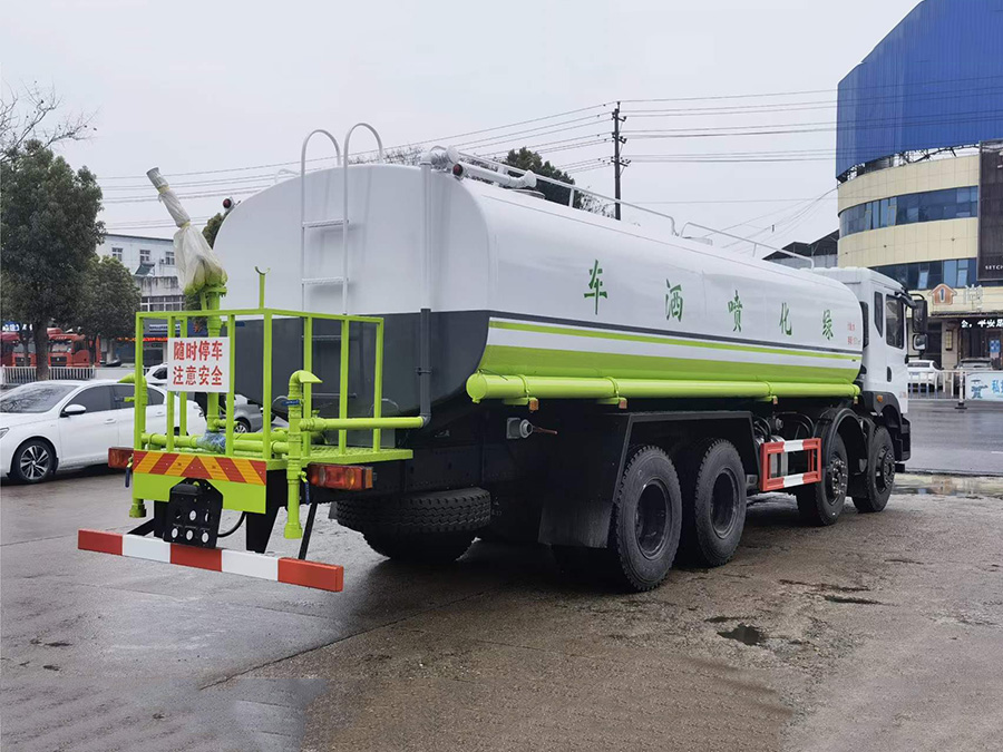 上裝配置簡要介紹:罐體采用標(biāo)準(zhǔn)Q235碳鋼制作,罐體自動焊,裝水25噸,配大功率專用灑水車,可自吸自排,前沖后灑,側(cè)噴,高位花灑,主管道加粗,大通徑球閥,直通球閥式消防接口,帶后工作平臺,沖孔平臺,帶高炮。(可選裝大平臺,可裝30米霧炮降塵)。環(huán)保,免征齊全。